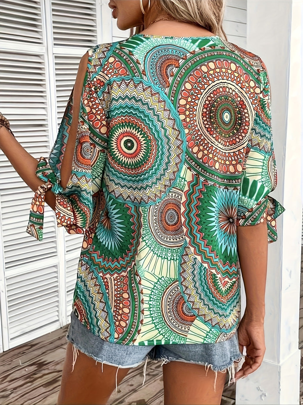 Short Sleeve Printed V-neck Pullover Casual Top Women