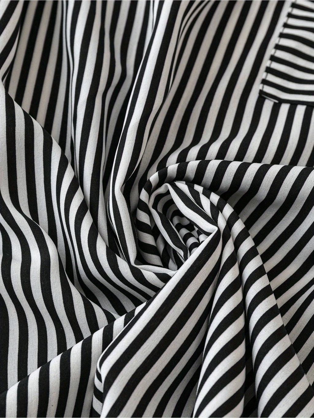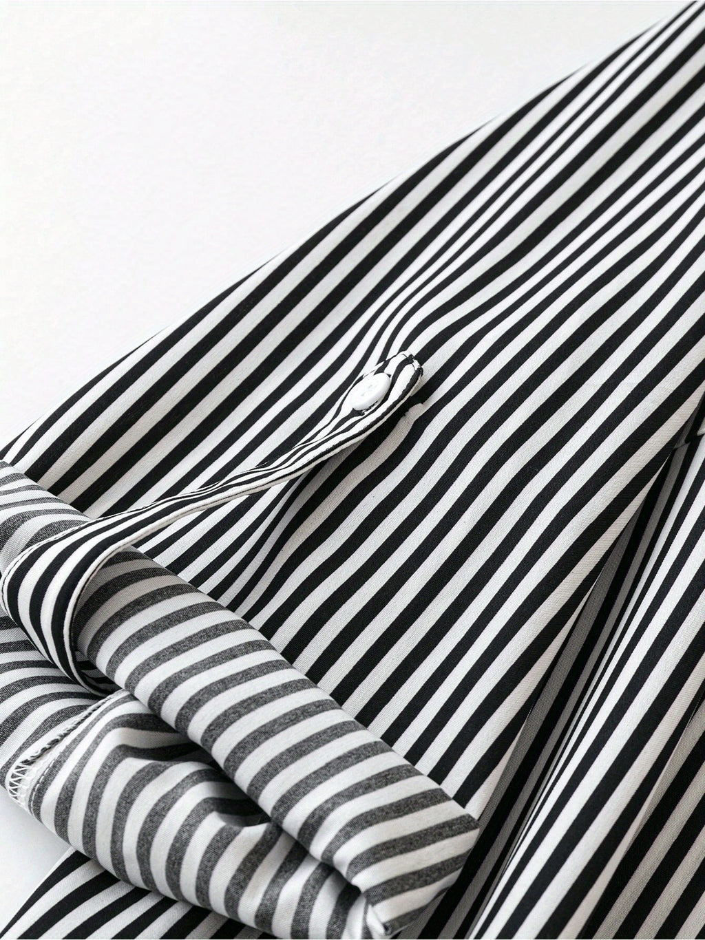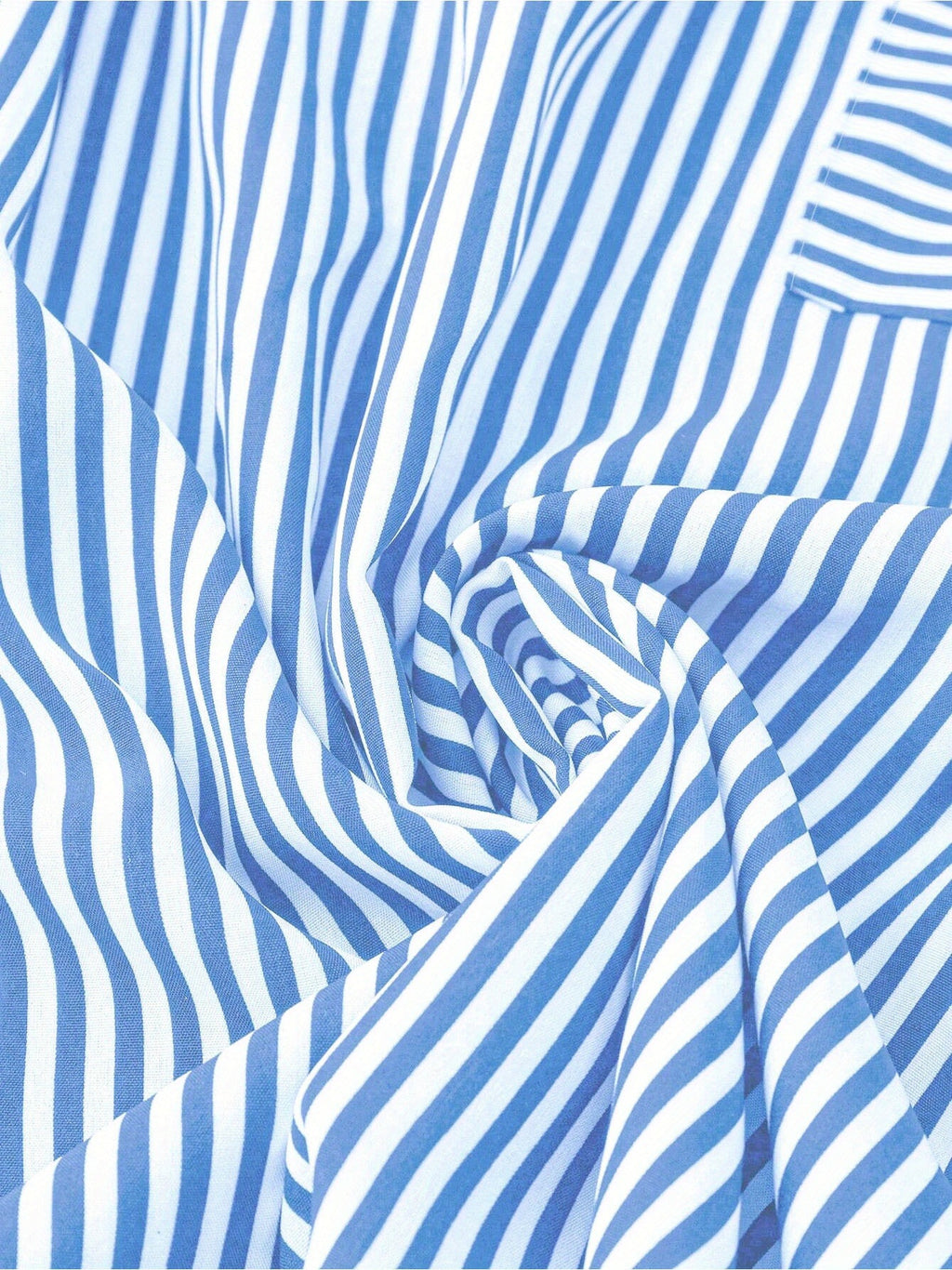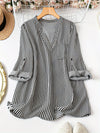 Women's Plus Size Casual Striped Shirt - Summer V-Neck Three-Quarter Sleeve Outdoor Top With Pockets