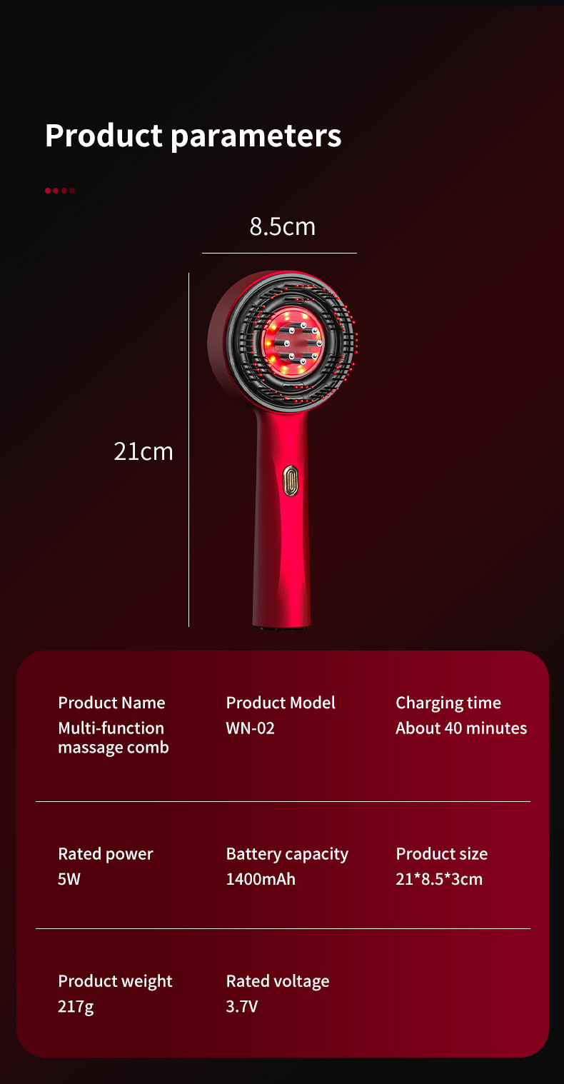 Scalp medicine applicator electric massage comb hair care comb liquid hair growth instrument red hair care comb kneading massager