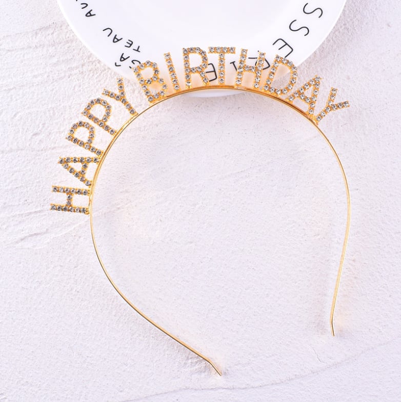 Happy birthday headband HappyBirthday flash diamond letter headband adult funny party hair accessories for women