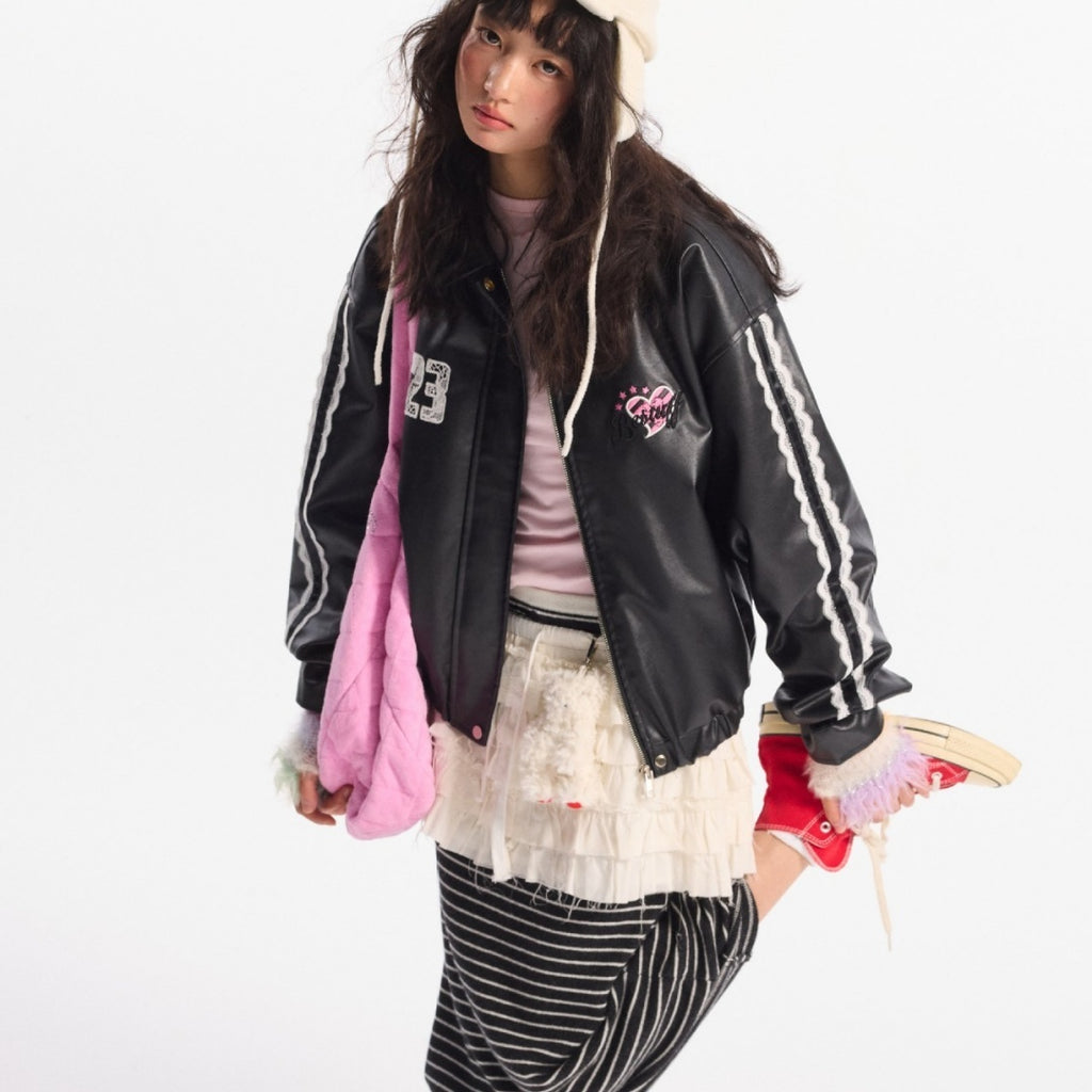 Women's Street Black Lace Love Number Embroidered Lapel Jacket