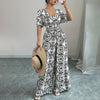 Step into summer with this chic short-sleeve jumpsuit that combines effortless style with all-day comfort ! Featuring a flattering V-neckline , smocked waist detailing , and flowy wide-leg pants , this one-piece outfit is perfect for both casual outings and dressy occasions. The breathable, lightweight fabric keeps you cool while the tailored silhouette ensures a polished look.