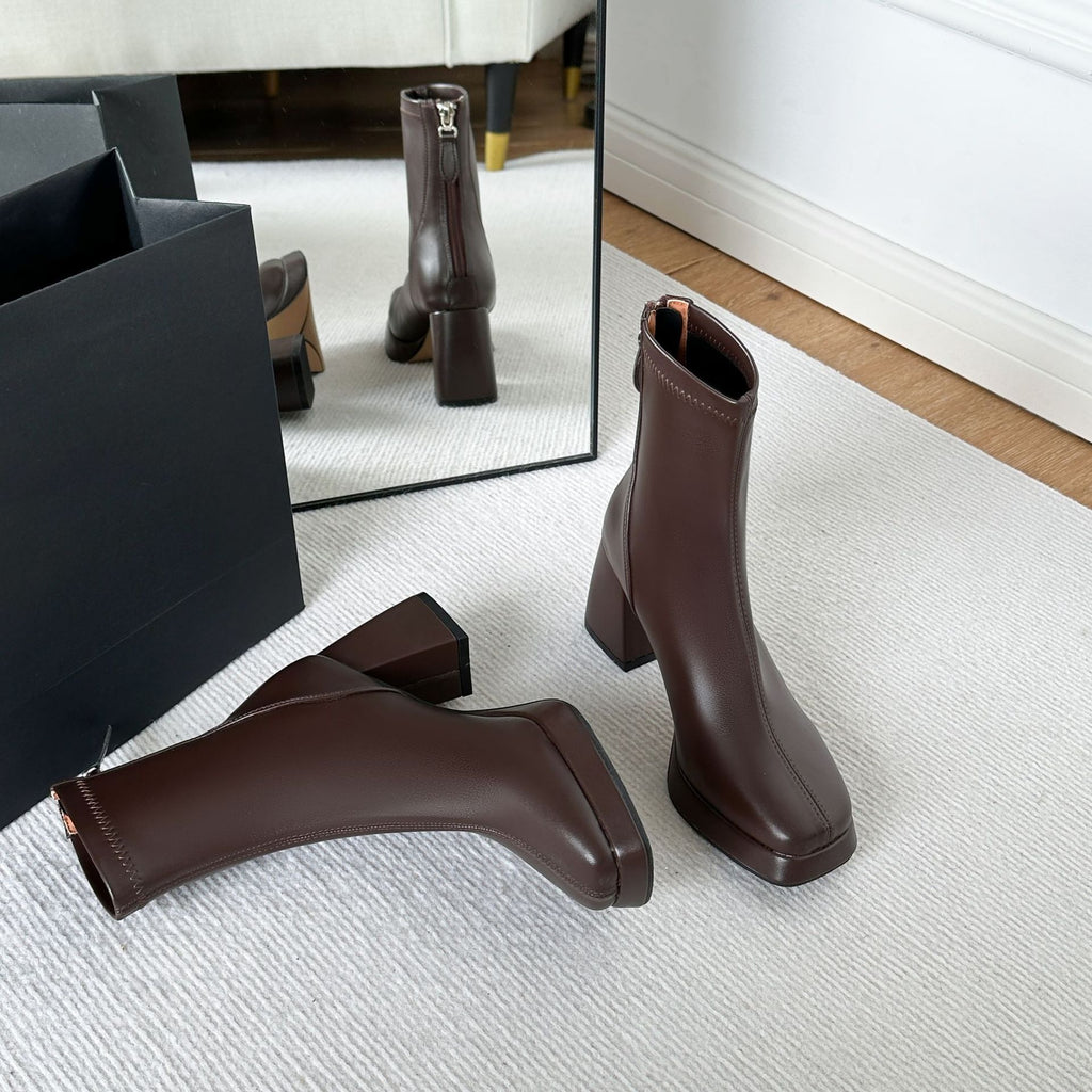 - Style: French-inspired short boots with a trendy Korean design