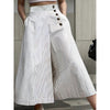 Womens Summer Casual Loose Striped Wide Leg Lounge Pants Elastic Waist Trousers With Button Details