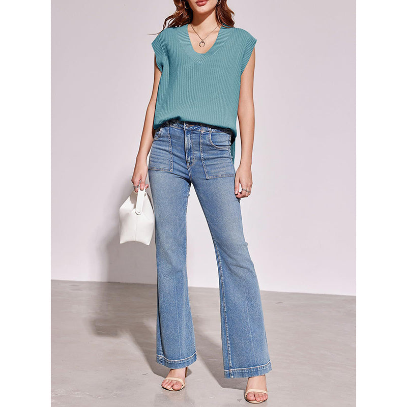 Women's Oversized V-Neck Sweater Vest – Ribbed Knit Sleeveless Pullover