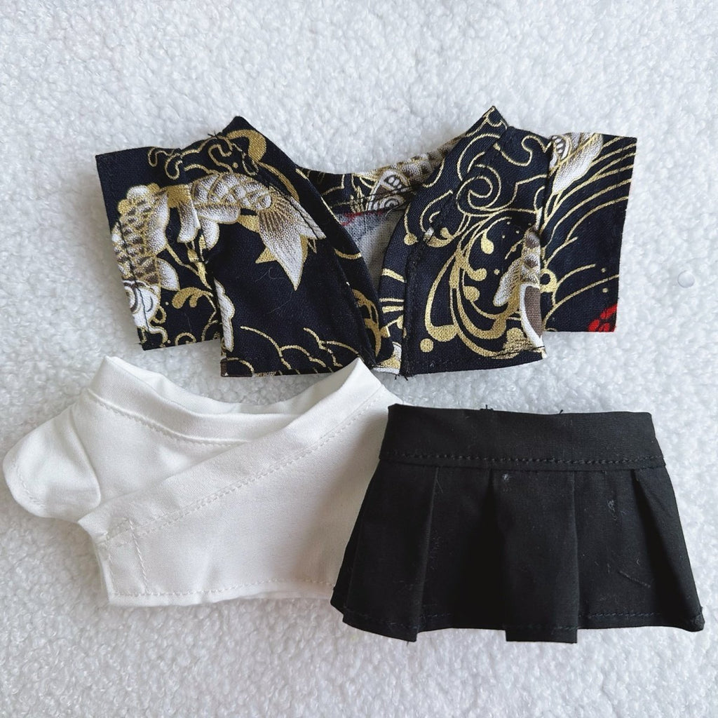 17cm Labubu Plush Doll with Kimono and Hair Accessories