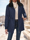 Casual Winter Clothes Contrast-Color Fur Collar Drawstring Waist Padded Padded Coat