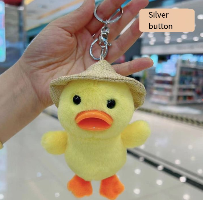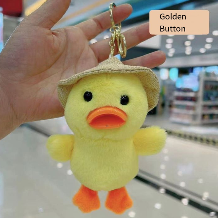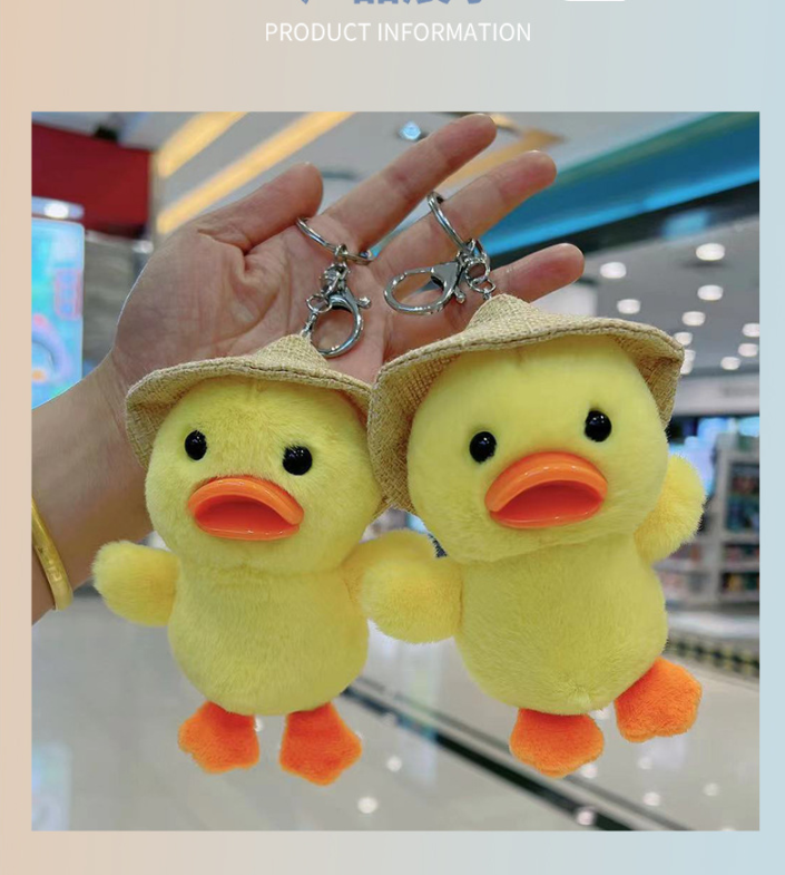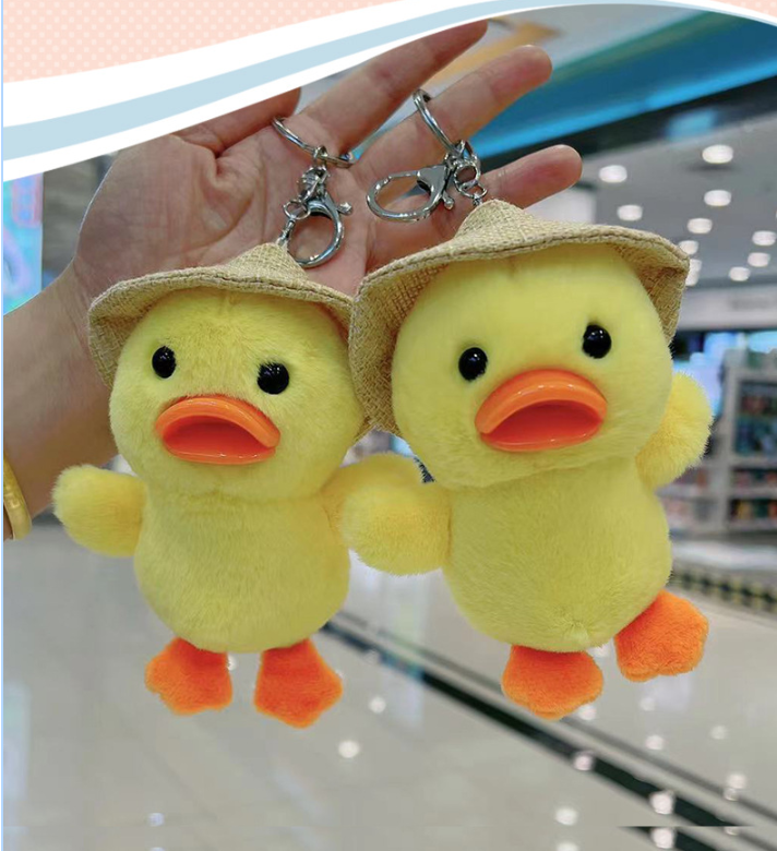 Cute Straw Hat Duck Plush Doll Keychain Pendant