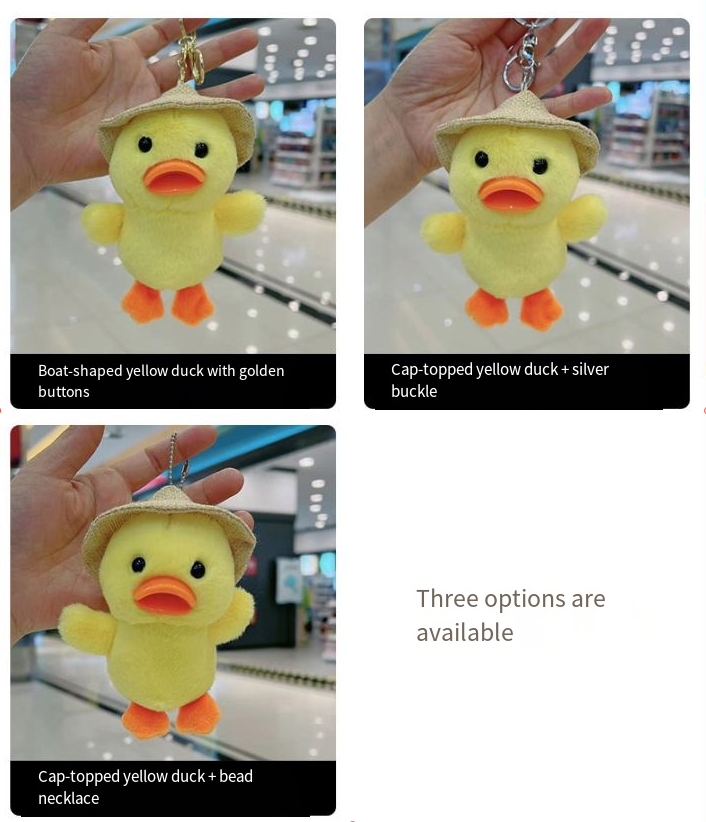 2. Cute Design: Stylish duck doll with a straw hat, available in different chain styles (bead, silver buckle, gold buckle).