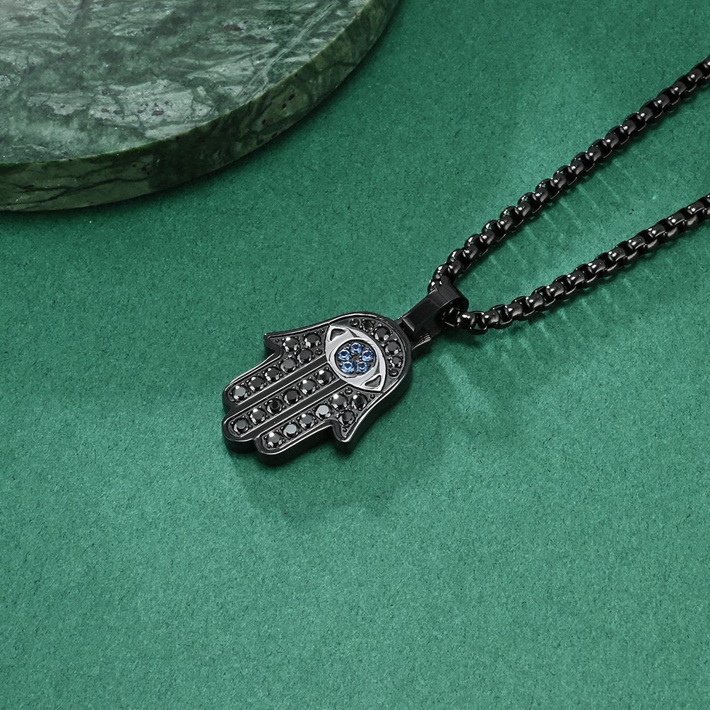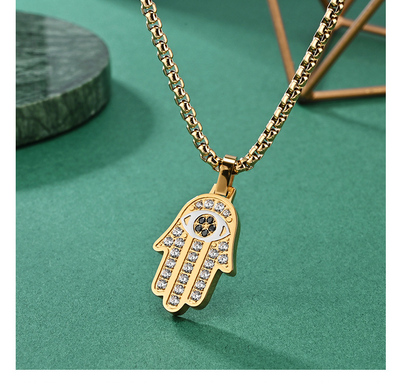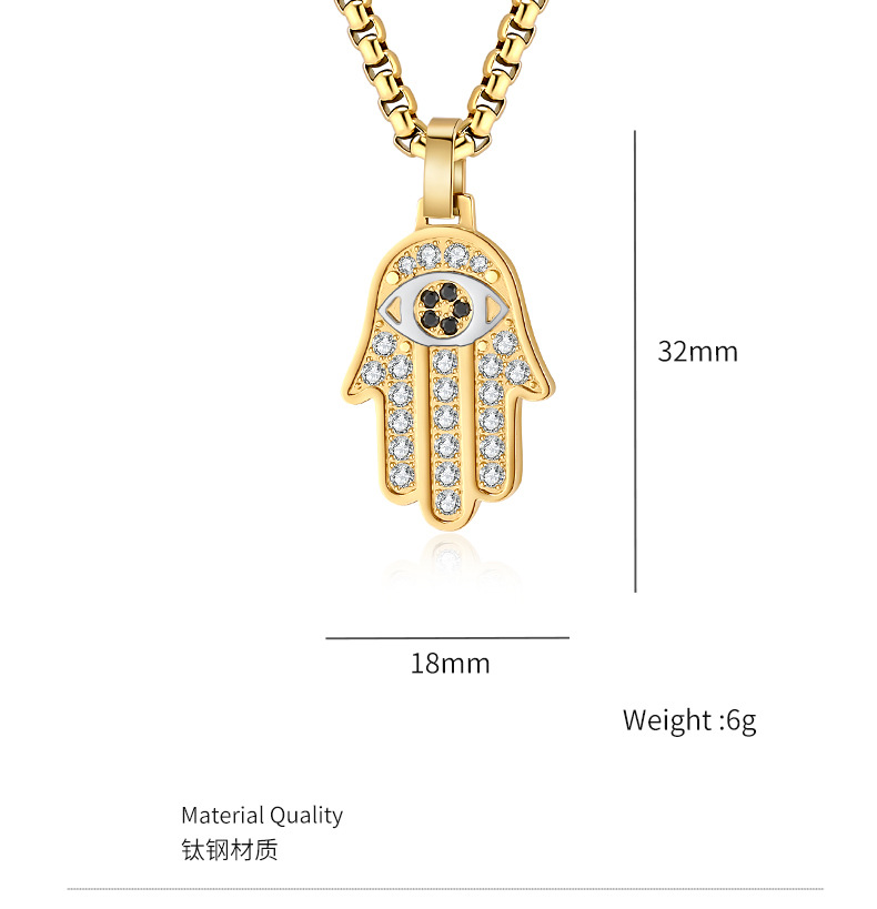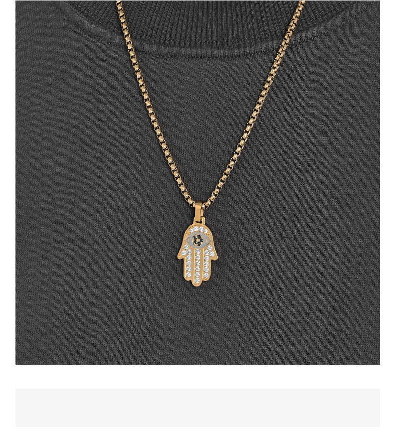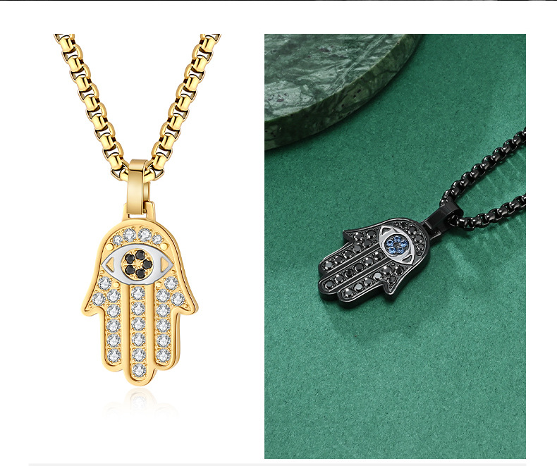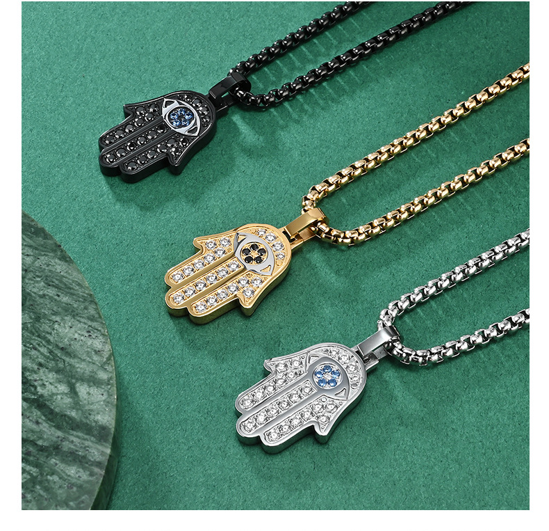 European and American Cross-border Classic Hand of Fatima CNC Full Diamond Titanium Steel Unisex Pendant Necklace Jewelry