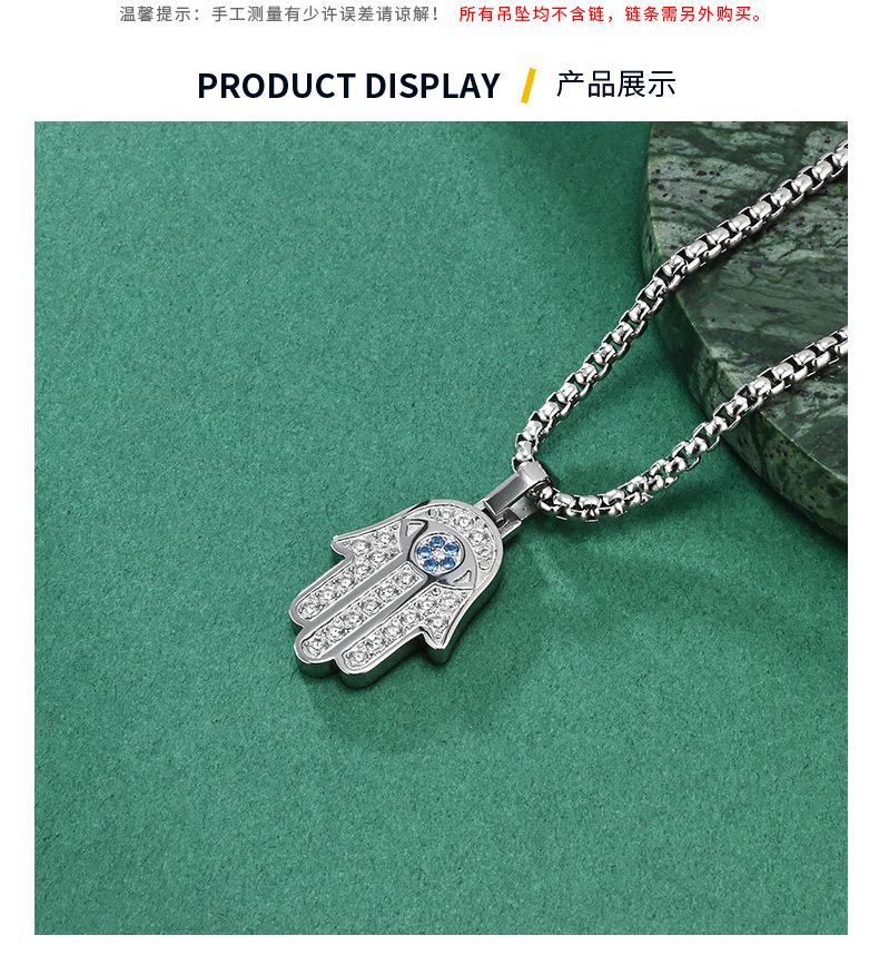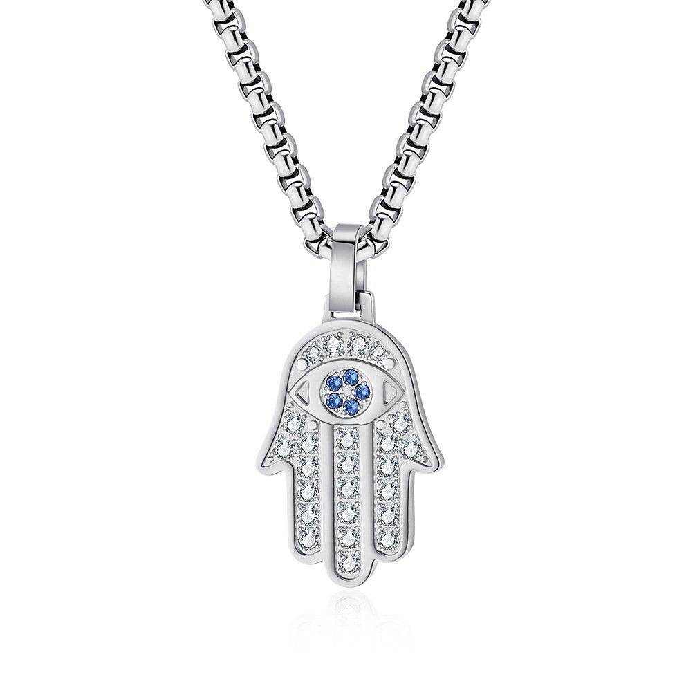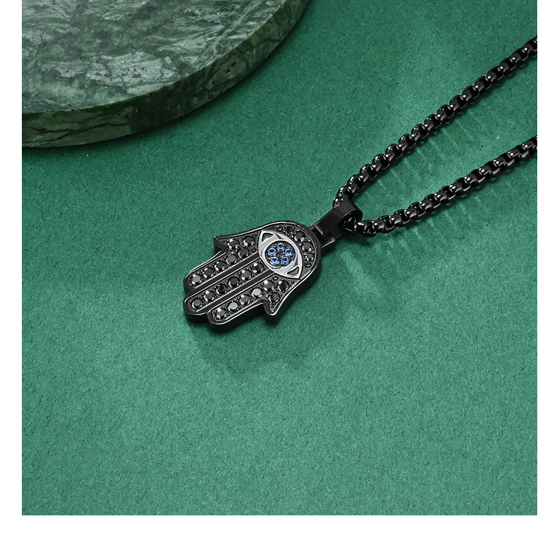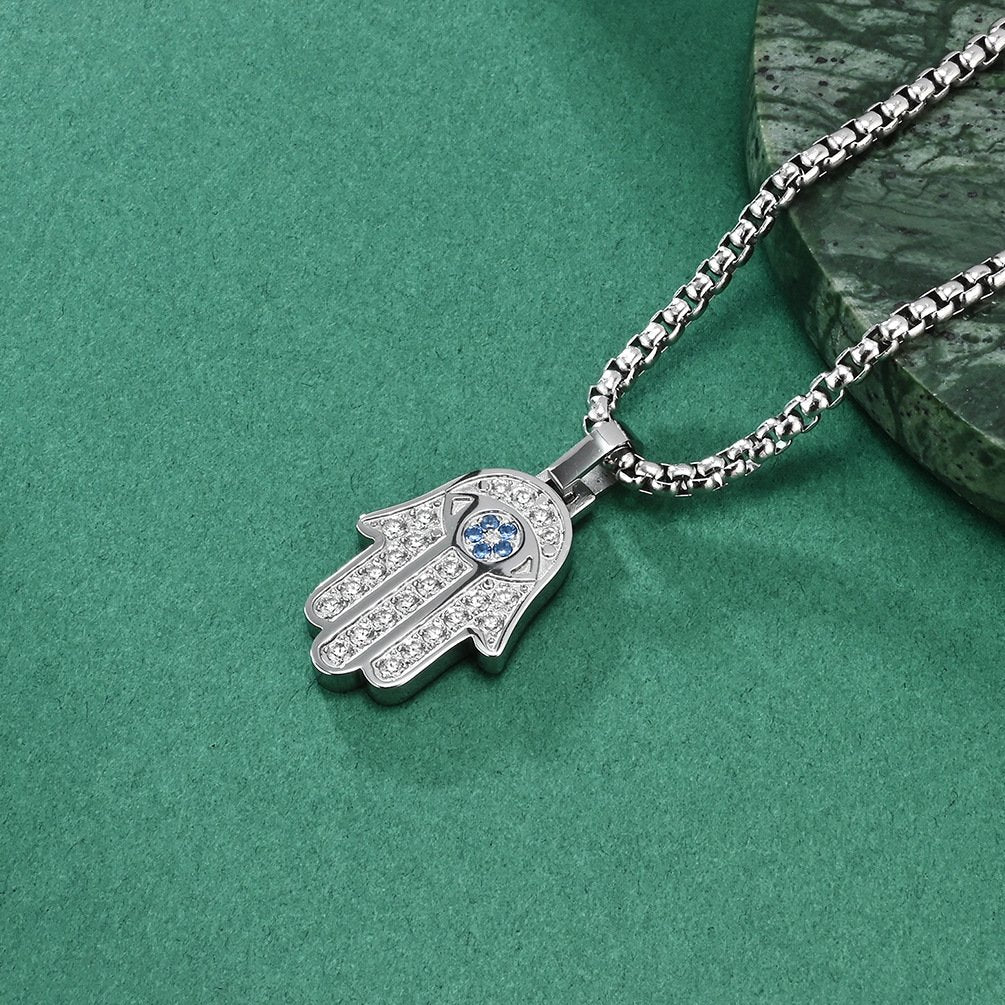European and American Cross-border Classic Hand of Fatima CNC Full Diamond Titanium Steel Unisex Pendant Necklace Jewelry