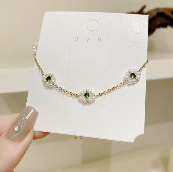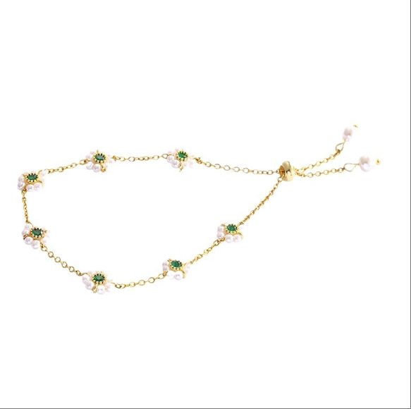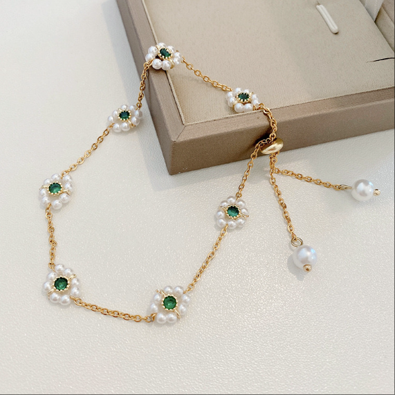 French style Titanium Steel Bracelet Imitation Pearl with Versatile Emerald Accents