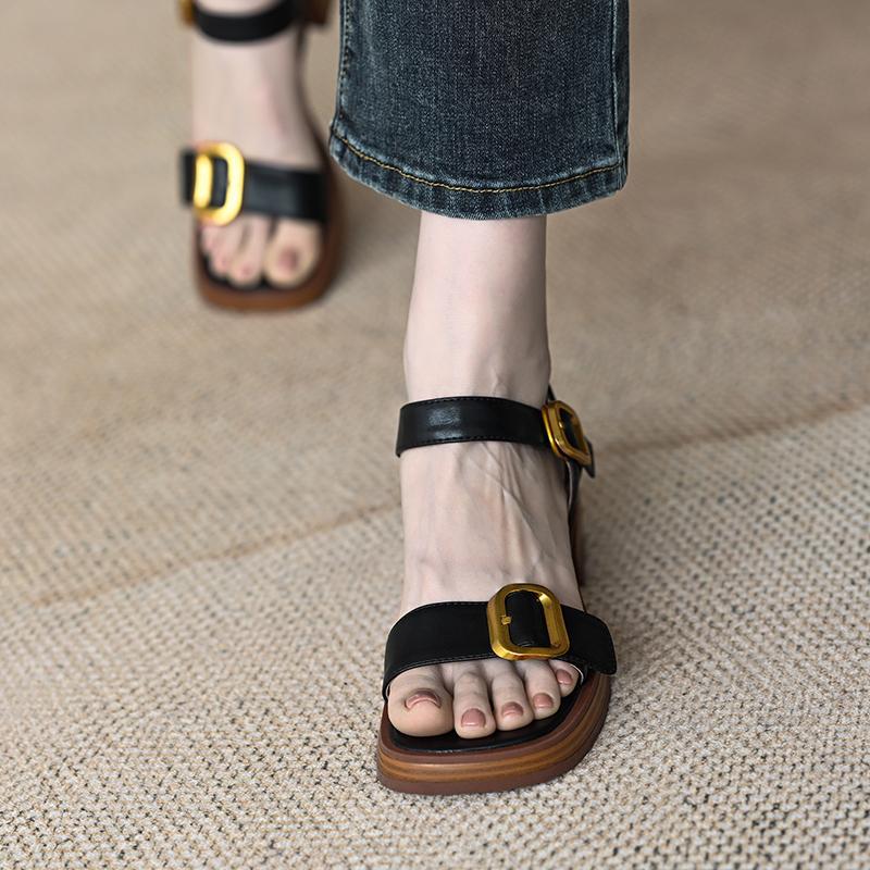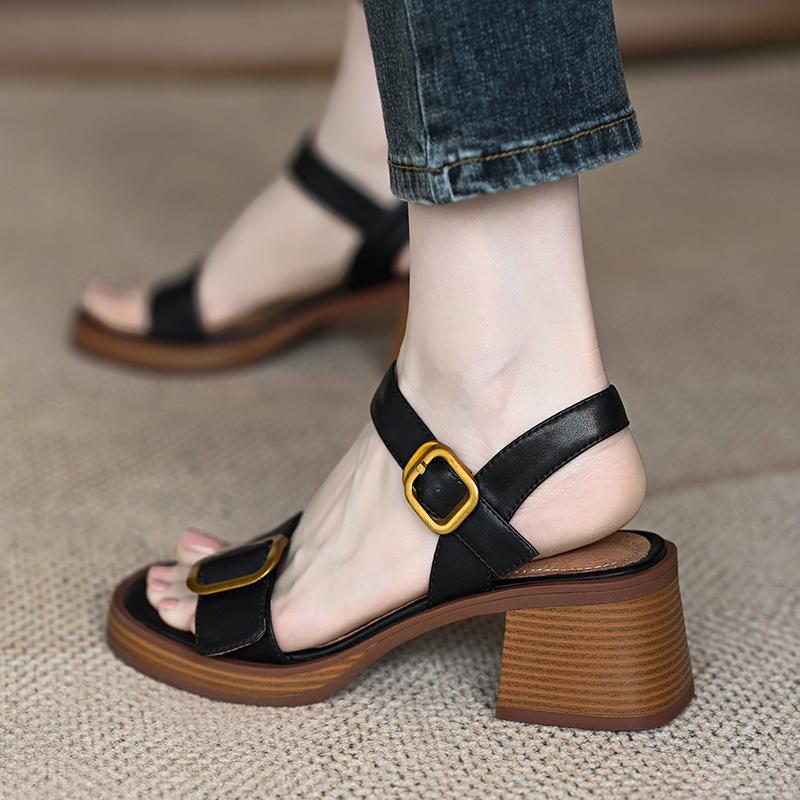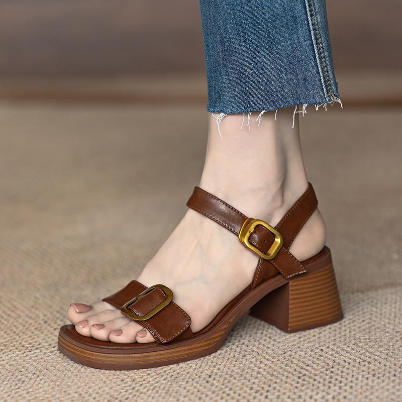 1. French Style: Elegant open-toe design with a chic rear buckle strap.