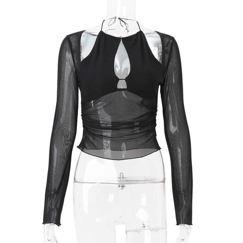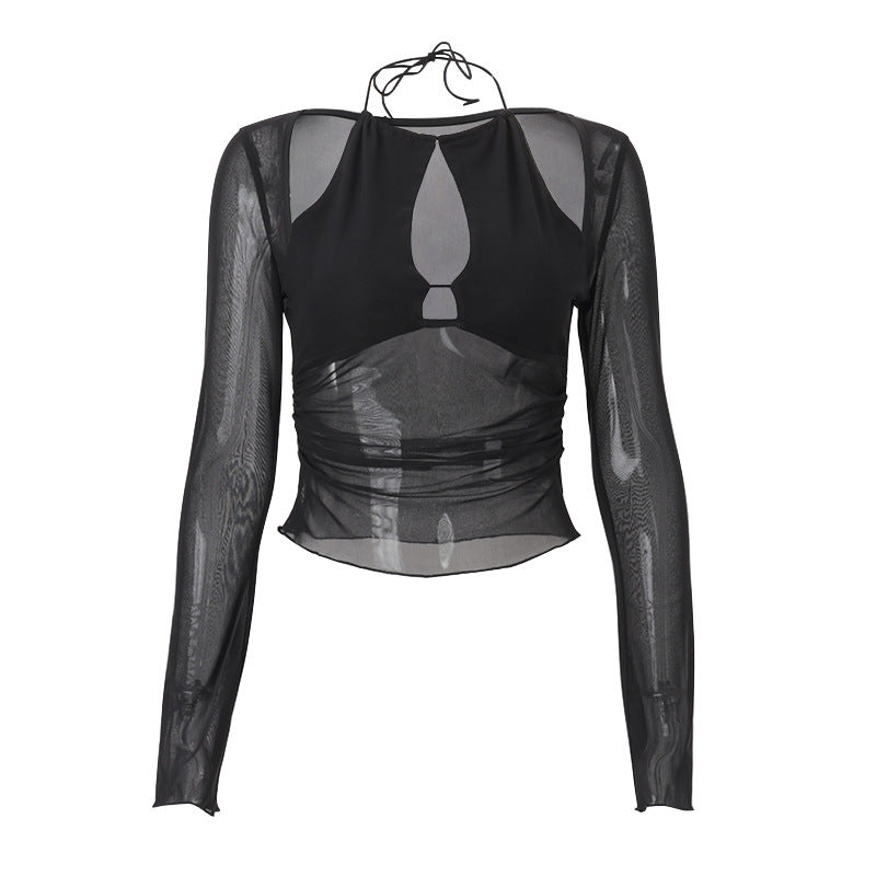Hollow Out Irregular Slim-fit Slimming Long Sleeve Top