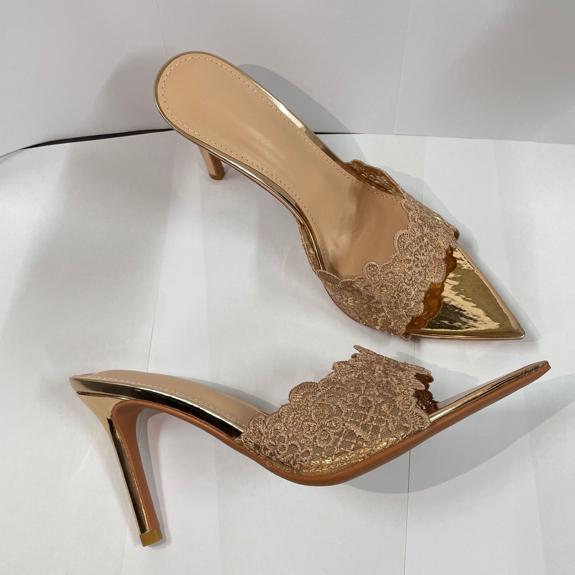 • Elegant Design: Lace high heel slippers with pointed toe and stiletto heel for a stylish look.