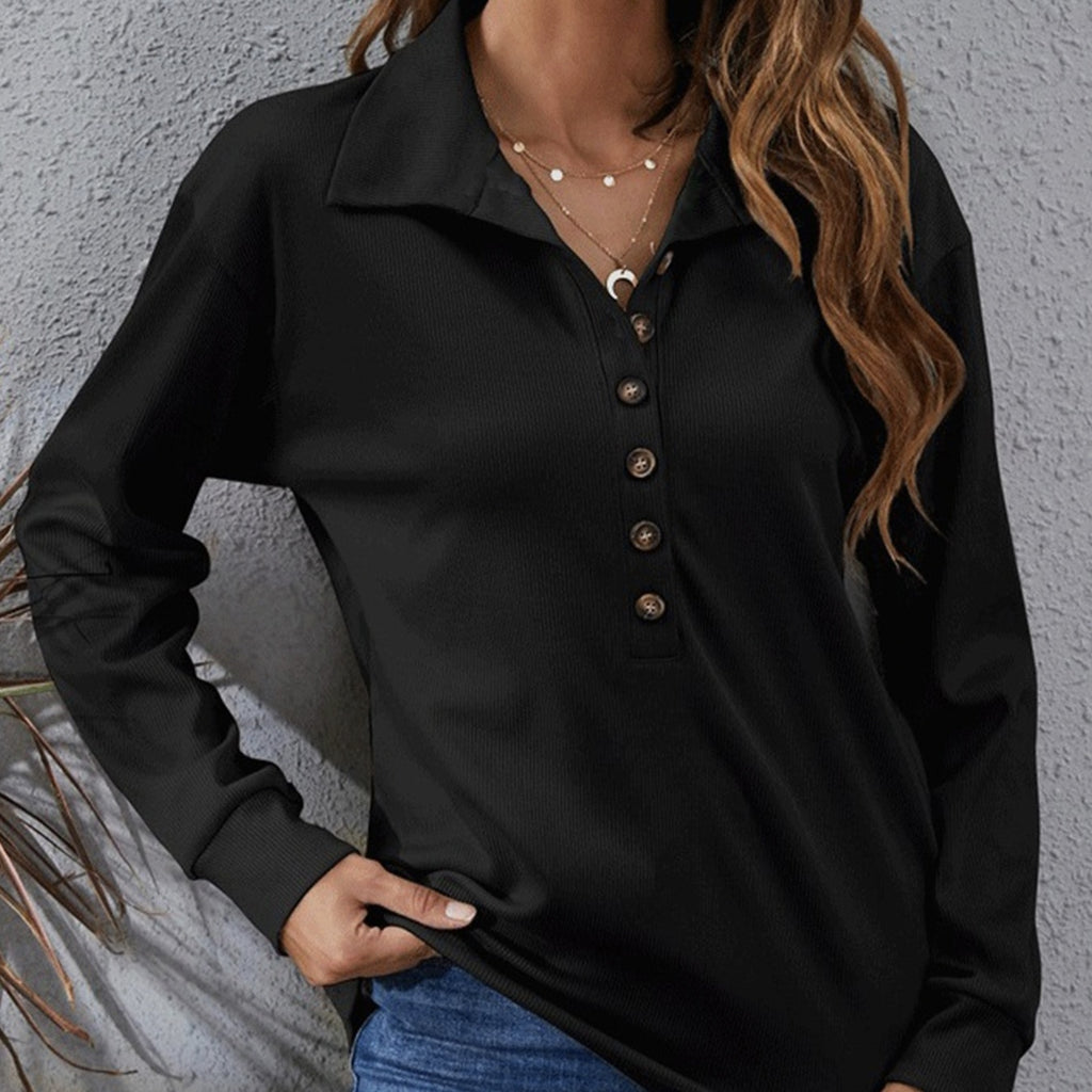 Ladies' Fashion Button Solid Color Collar Button Elegant T-shirt