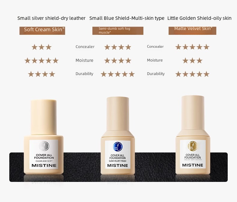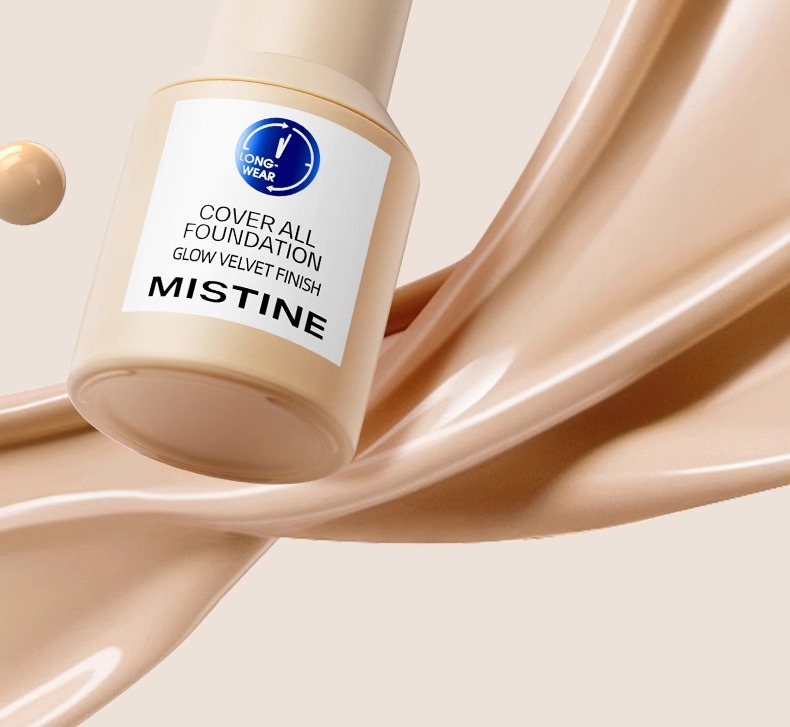 "Mistine Cover All Blue Shield Liquid Foundation is a must - have for a perfect base makeup.