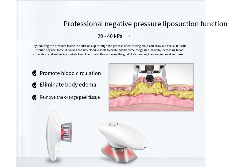 2.It adopts advanced negative pressure technology to effectively break down and extract fat cells, helping you achieve remarkable results in slimming your belly and legs.
