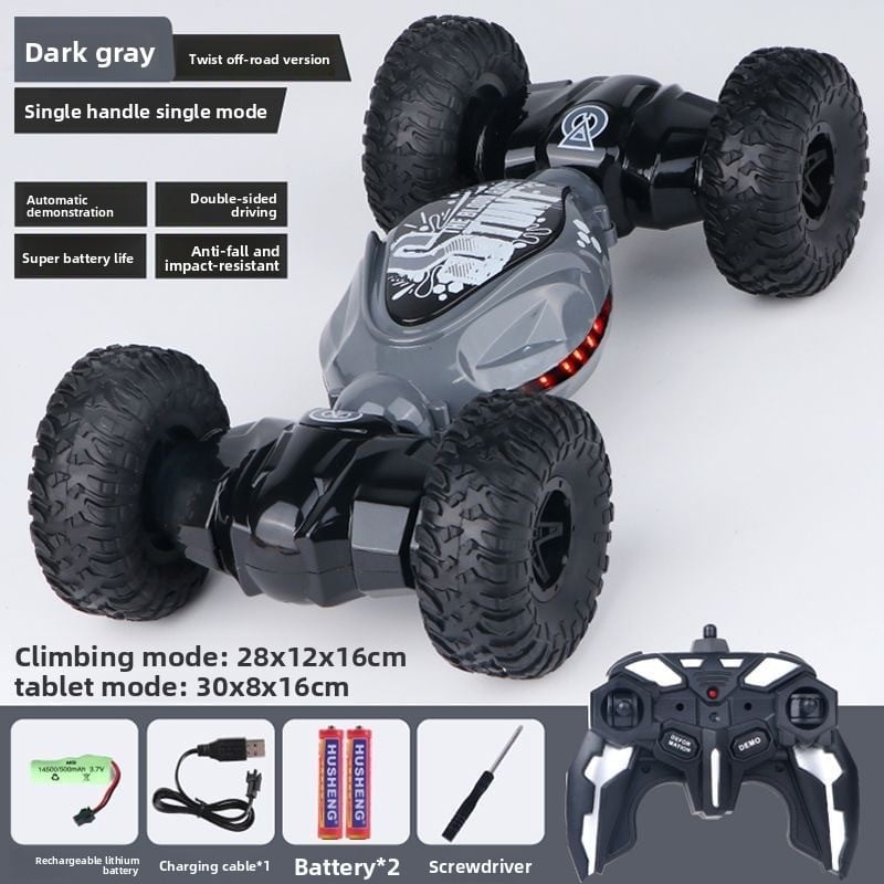Features: Drift, universal tires, bionic spine, 360° tumbling, four-wheel drive, transverse driving, light and music
