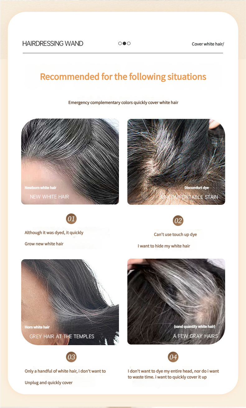 - Temporary hair dye: Covers white hair naturally with a temporary color effect.