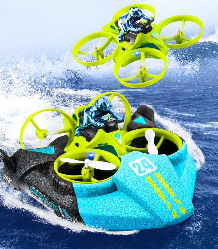 3.With its advanced remote control system, you can easily operate it to fly in the sky, sail on the water or drive on the land.