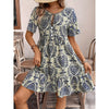 Women Casual Summer Dress Boho Drawstring V Neck Short Sleeve Floral Print Flowy Beach Dress