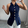 Women's Elegant Solid Sleeveless Vest - Button Front Lapel Top, Slim Fit Camisole for Spring/Summer