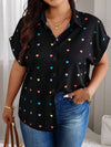 Women's Plus Size Heart Print Button-Down Shirt - Summer Casual Short Sleeve Outdoor Top