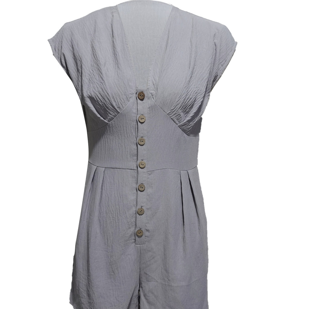 Women's Solid Color V-neck Patchwork Button Fashion Short Jumpsuit