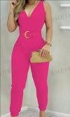 Women's Solid Color V-Neck Pleated Sleeveless Jumpsuit For Daily & Office Wear, Summer