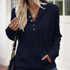 Women's V-Neck Textured Hoodie – Stylish & Functional Pullover with Button Front & Kangaroo Pockets